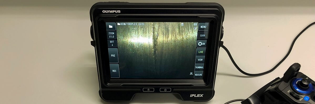 Foto gescheurde buis met een starre endoscoop voorzien van een 70 graden kijkrichting inclusief de CC270 externe camera.