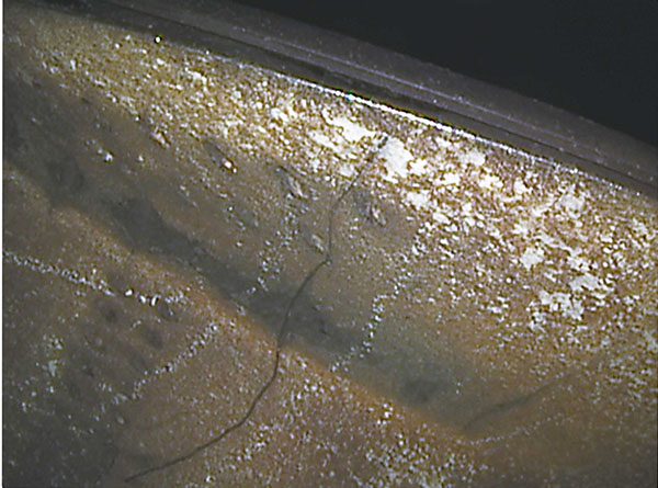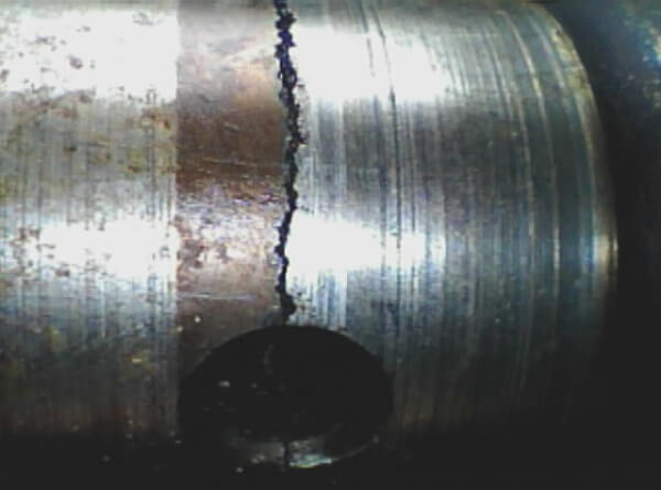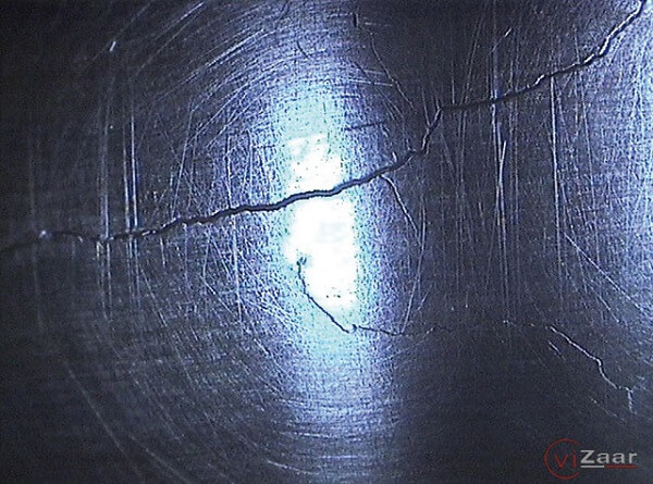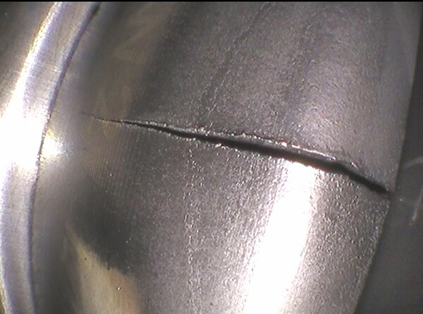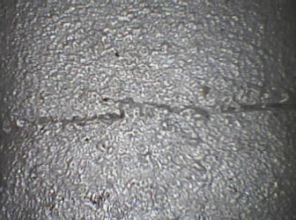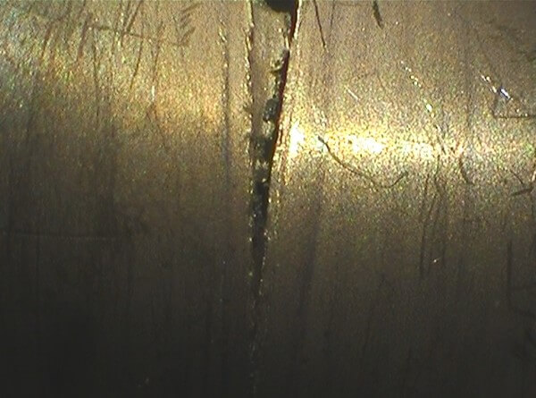 Scheur in gietstuk gemaakt met de RF SYSTEM lab bestuurbare video endoscoop 6.9 mm.